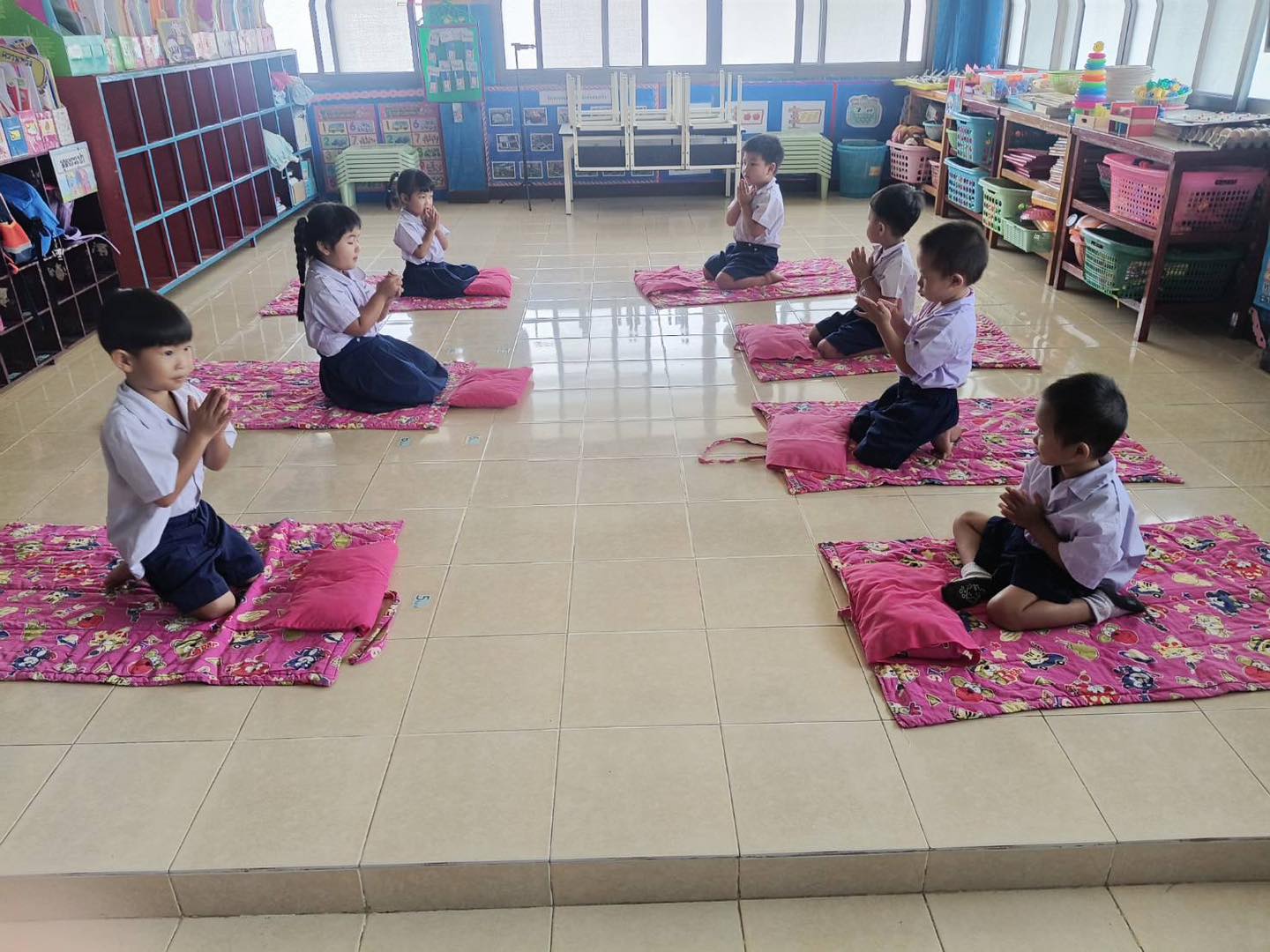 กิจกรรมไว้พระสวดมนต์ การแผ่เมตตา พร้อมคำแปล กิจกรรมนั่งสมาธิ ก่อนเริ่มเรียน