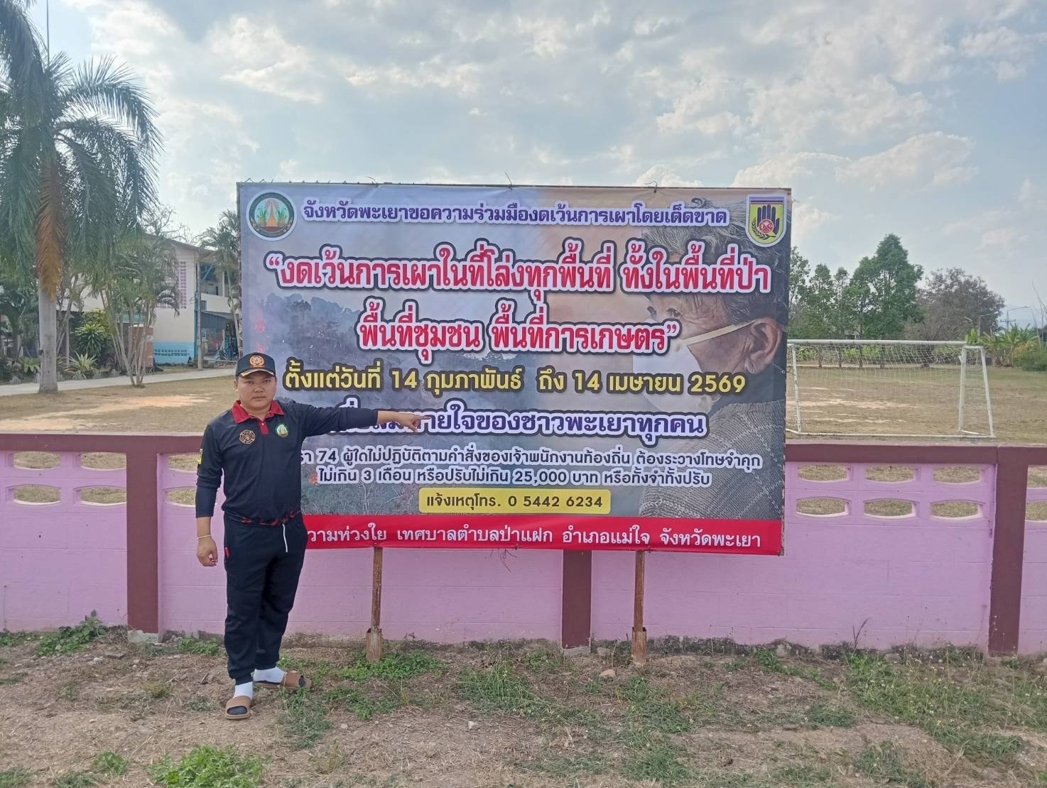ประชาสัมพันธ์ขอความร่วมมืองดเว้นการเผาโดยเด็ดขาด การเฝ้าระวังและการสนับสนุนการดำเนินการแก้ไขปัญหาไฟป่าและหมอกควันและฝุ่นละอองขนาดเล็ก (PM 2.5) พื้นที่จังหวัดพะเยา