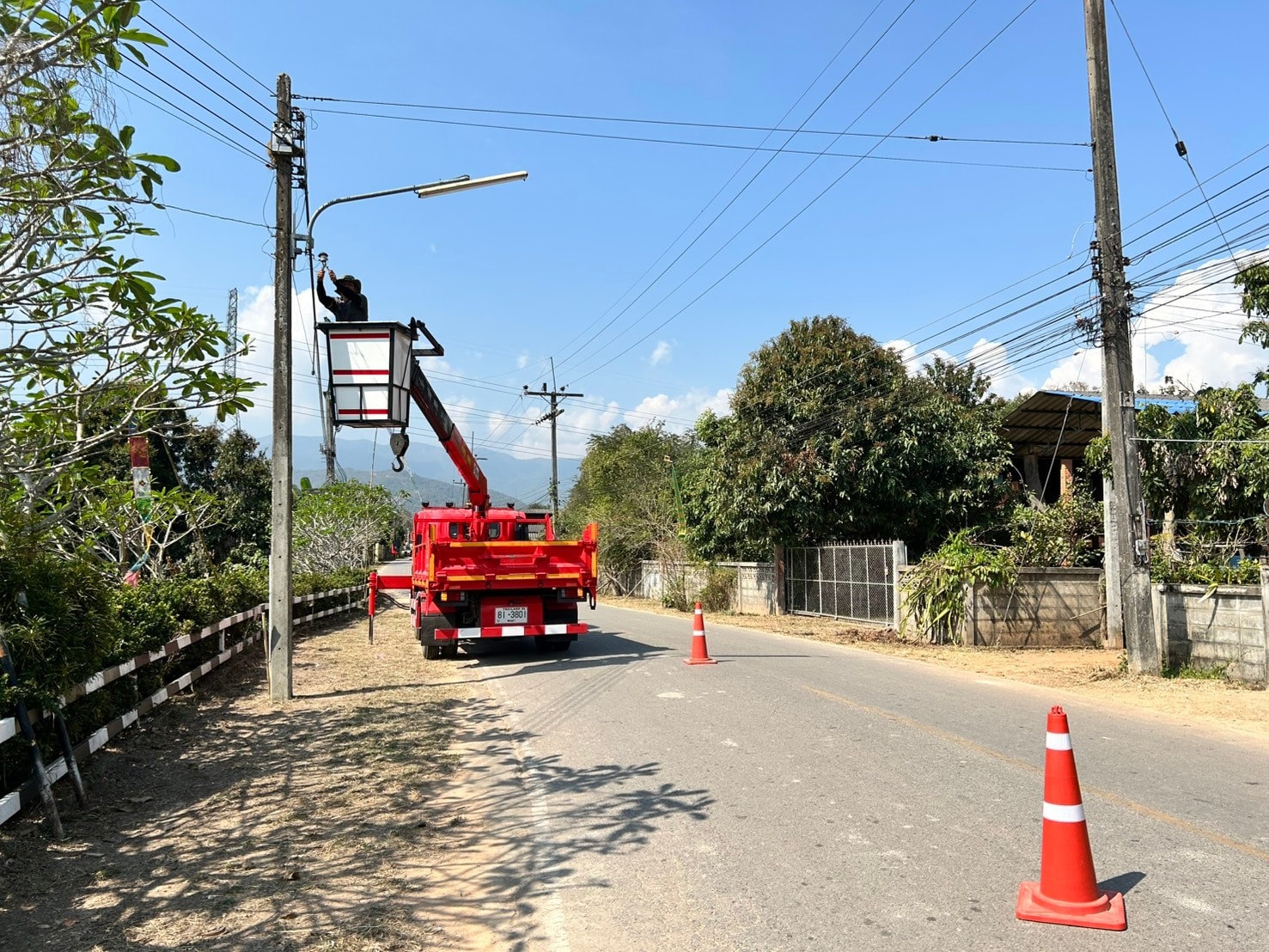 วันที่ 21 สิงหาคม 2568 กองช่าง ทต.ป่าแฝก ซ่อมแซมไฟฟ้าสาธารณะ (ไฟกิ่ง)