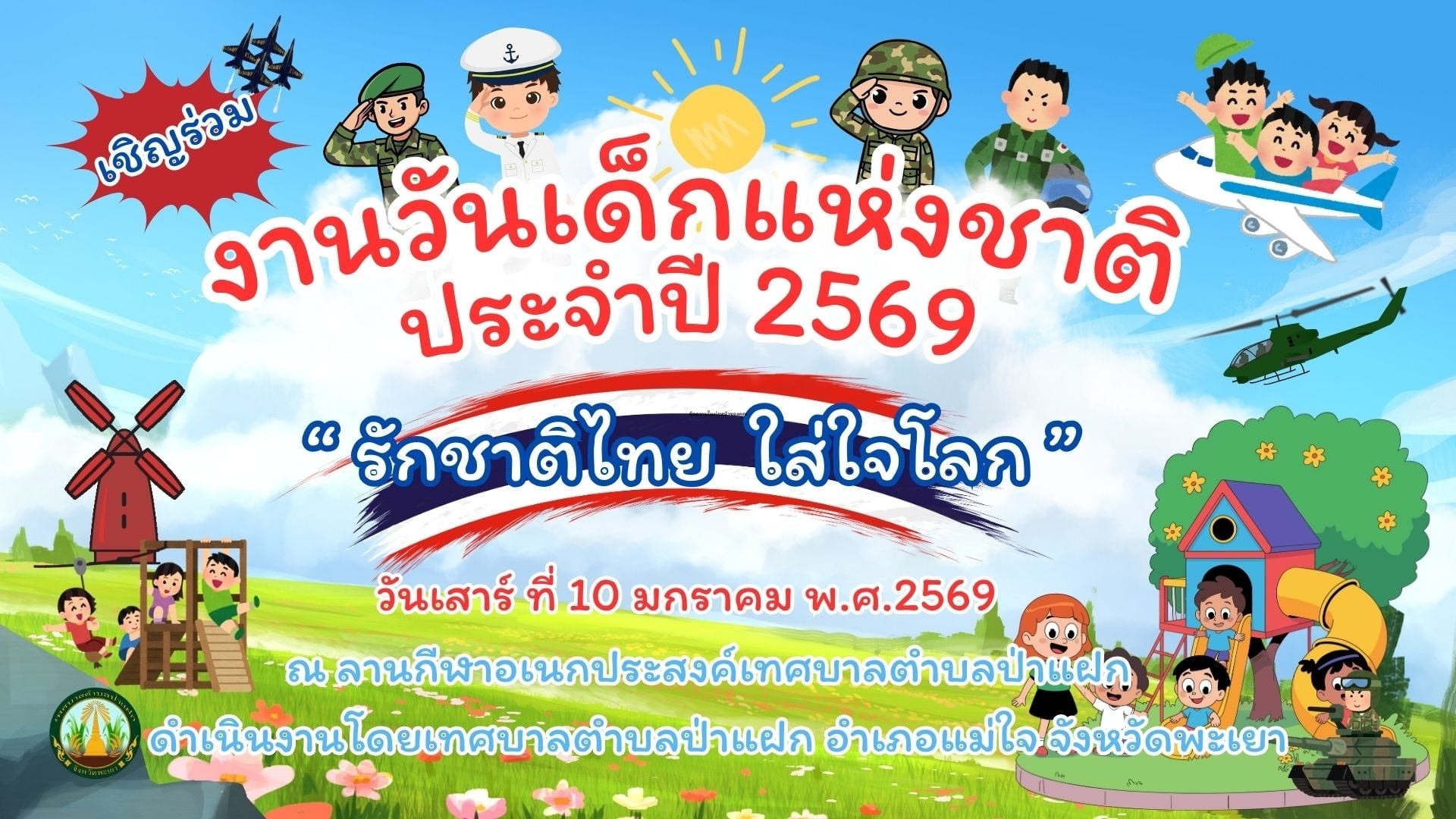 ขอเชิญชวนน้องๆเด็กและเยาวชนตำบลป่าแฝก ร่วมกิจกรรมวันเด็กแห่งชาติเทศบาลตำบลป่าแฝก ประจำปี 2569 และเชิญชวนผู้ใหญ่ใจดีสนับสนุนของขวัญของรางวัลให้กับเด็กๆ