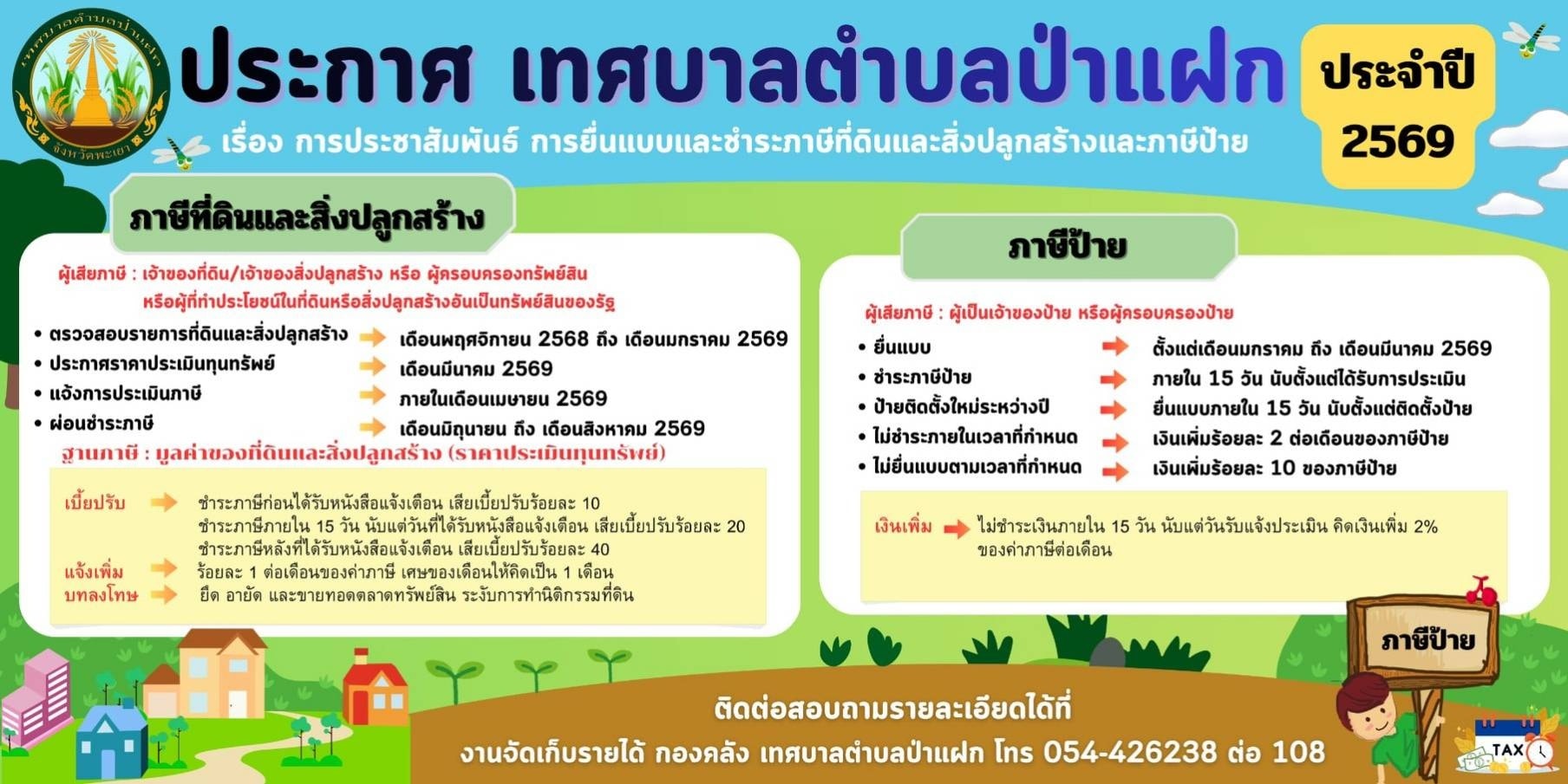 ประชาสัมพันธ์การยื่นแบบและชำระภาษีที่ดินและสิ่งปลูกสร้างและภาษีป้าย ป่ระจำปี 2569