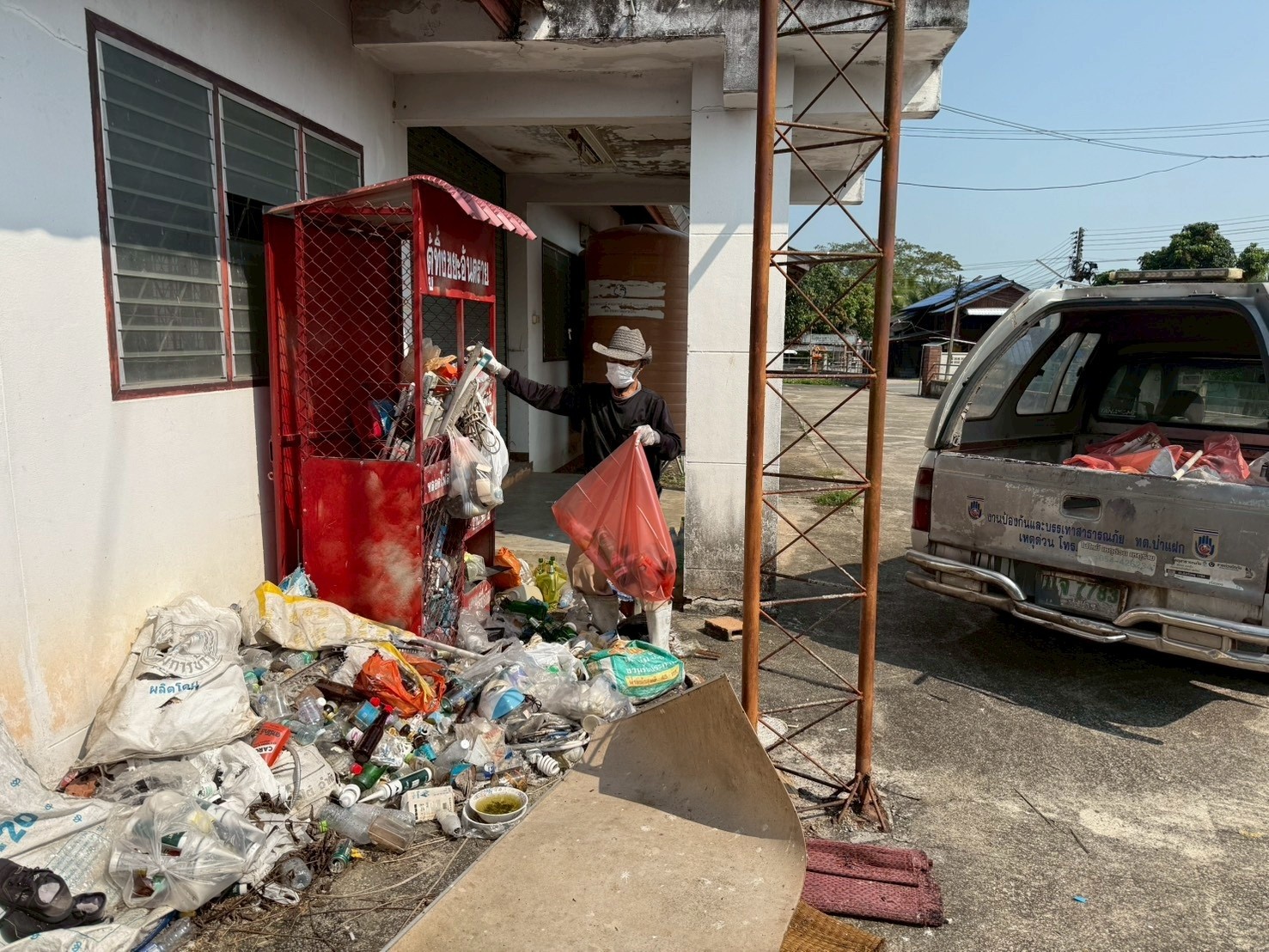 วันอังคาร ที่ 17 มีนาคม 2569 งานสาธารณสุขและสิ่งแวดล้อม ดำเนินการจัดเก็บขยะอันตราย ณ จุดรวบรวมขยะอันตรายในพื้นที่ตำบลป่าแฝกทั้ง 11 หมู่บ้าน