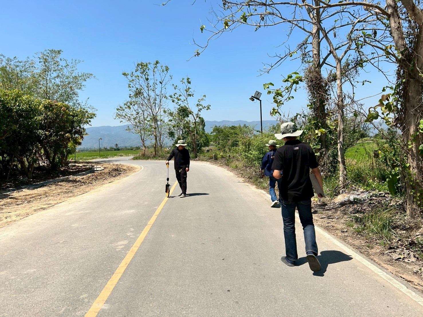 คณะกรรมการตรวจรับงานจ้างโครงการก่อสร้างถนนคอนกรีตเสริมเหล็กทดสอบความแน่นชั้นรองพื้นทางถนนสายบ้านใหม่สันคือหมู่ที่ 7 เชื่อมหมู่ที่ 4 บ้านป่าแฝกดอย